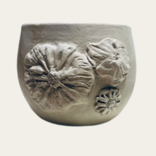 Håndlavet keramikkrus med afstøbning af økologiske blomster